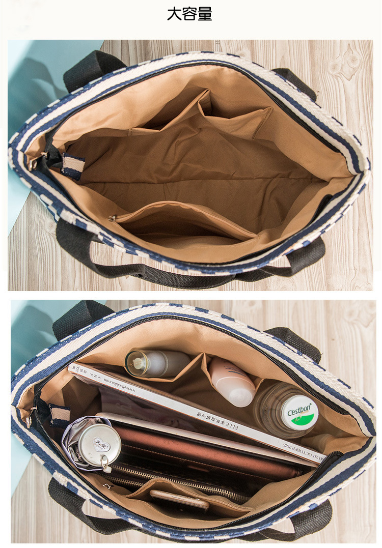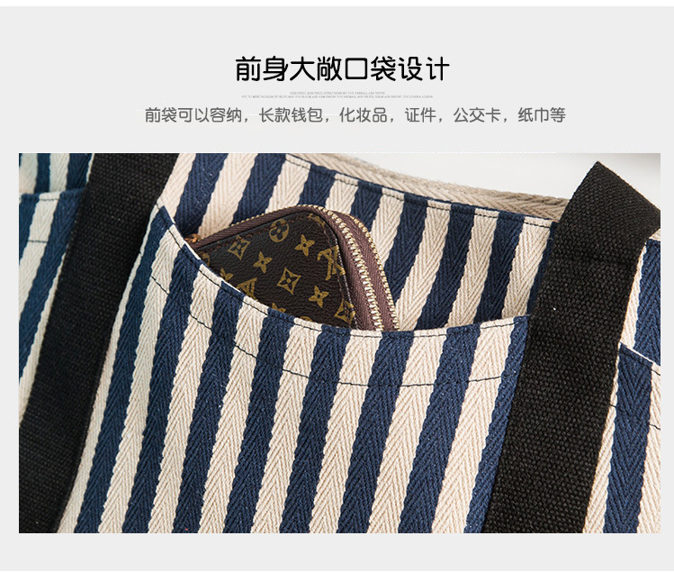 廠家定制歐美時(shí)尚女包,條紋帆布包女式手提單肩包托特媽咪帆布袋大包,簡(jiǎn)約的設(shè)計(jì)風(fēng)格,大氣的五金搭配,走線勻稱,內(nèi)部實(shí)用,顏色正,質(zhì)感好。