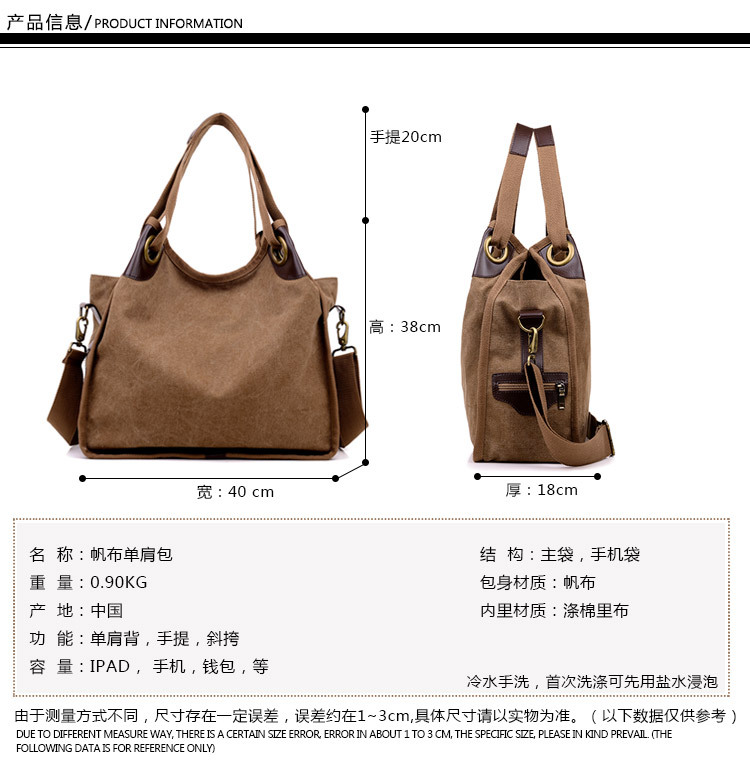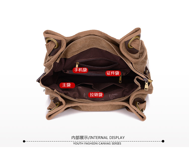 廠家定制時尚帆布包包,復古單肩手提包,女包大容量旅行包,斜挎包韓版潮,簡約的設計風格,大氣的五金搭配,走線勻稱,內部實用,顏色正,質感好。