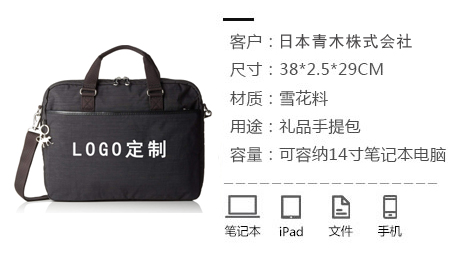 一直能夠與青木攜合作共贏,立宏箱包深感榮幸,青木株式會社的信任與支持,是對立宏箱包最大的肯定!公文包、電腦包定制,請認準立宏箱包廠家,立宏箱包成立十三載,不僅擁有豐富的箱包生產(chǎn)經(jīng)驗,且還有足夠的能力按客戶需求研發(fā)設計新款式,先后服務過上千家知名企業(yè),比如 青木、Samantha、索尼、華為、尼康、達芙妮、迪桑娜、巴尼斯等,產(chǎn)品廣泛應用于各個領域,看得見的實力體現(xiàn),值得選擇,值得信賴!