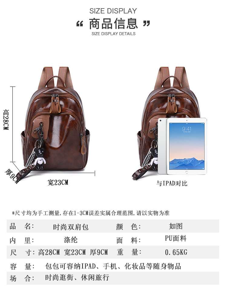 廠家定制新款大容量旅游雙肩包包女潮韓版女士旅行背包百搭書包,時(shí)尚經(jīng)典,簡約的設(shè)計(jì)風(fēng)格,大氣的五金搭配,走線勻稱,內(nèi)部實(shí)用,顏色正,質(zhì)感好。